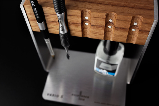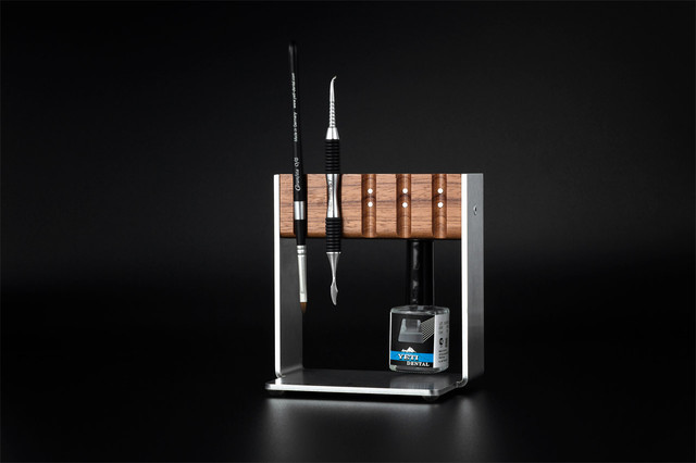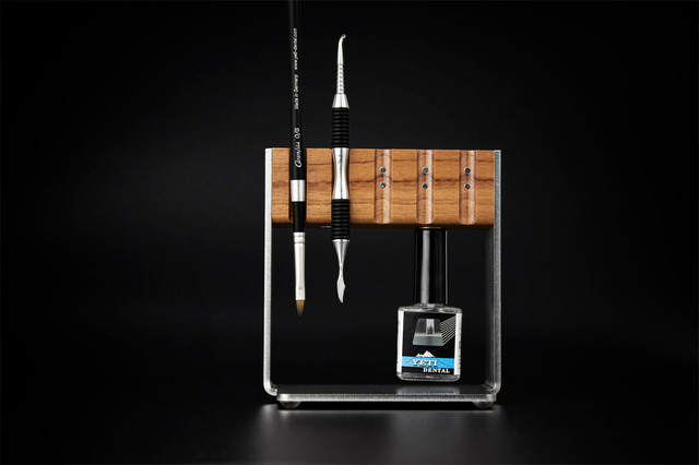 Магнітна підставка Vario є серцем Excellence Line. Виготовлена із високоякісних матеріалів, що має витончену та функціональну форму підставка використовується для утримання та зберігання продуктів Excellence Line. На магнітній підставці фіксуються: лаки Aqua Spacer, фрези з набору Фрези для цирконію, K2 Lube, а також всі види пензликів Caramista.